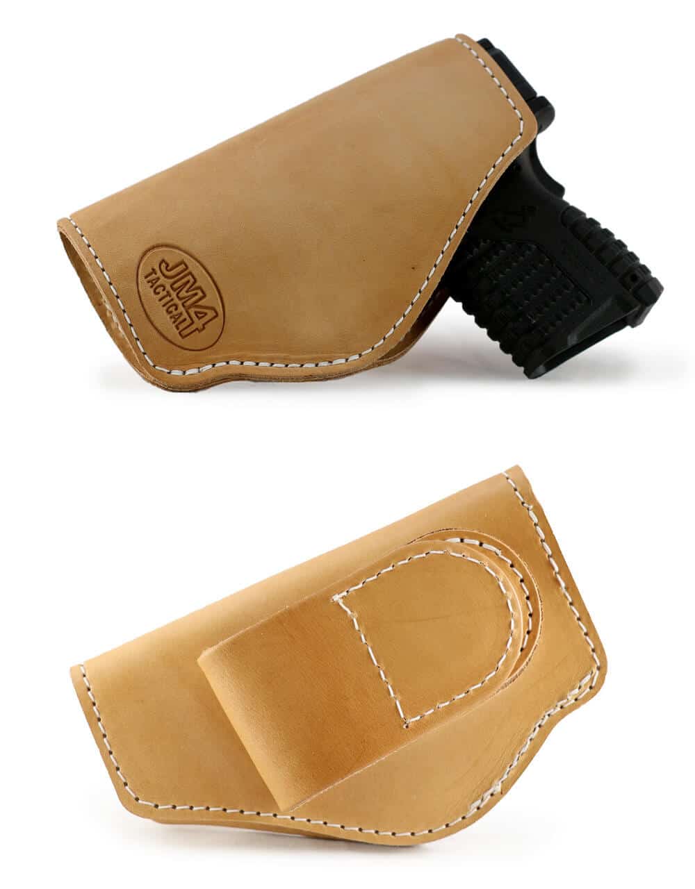 Made with Hermann Oak Grade A Vegetable Tanned Steer Hide that’s Ph balanced for gun contact, you will never need to worry about the damage to the bluing of your firearm.  The black and brown gun holsters do start as Hermann Oak Grade A Vegetable Tanned Steer Hide and are hand dyed with high grade dyes. To keep the comfort of the soft leather we do not apply a sealant to the black or brown holsters and they do have the possibility of slight bleeding onto skin or clothing the first couple times of use but will wash out.
